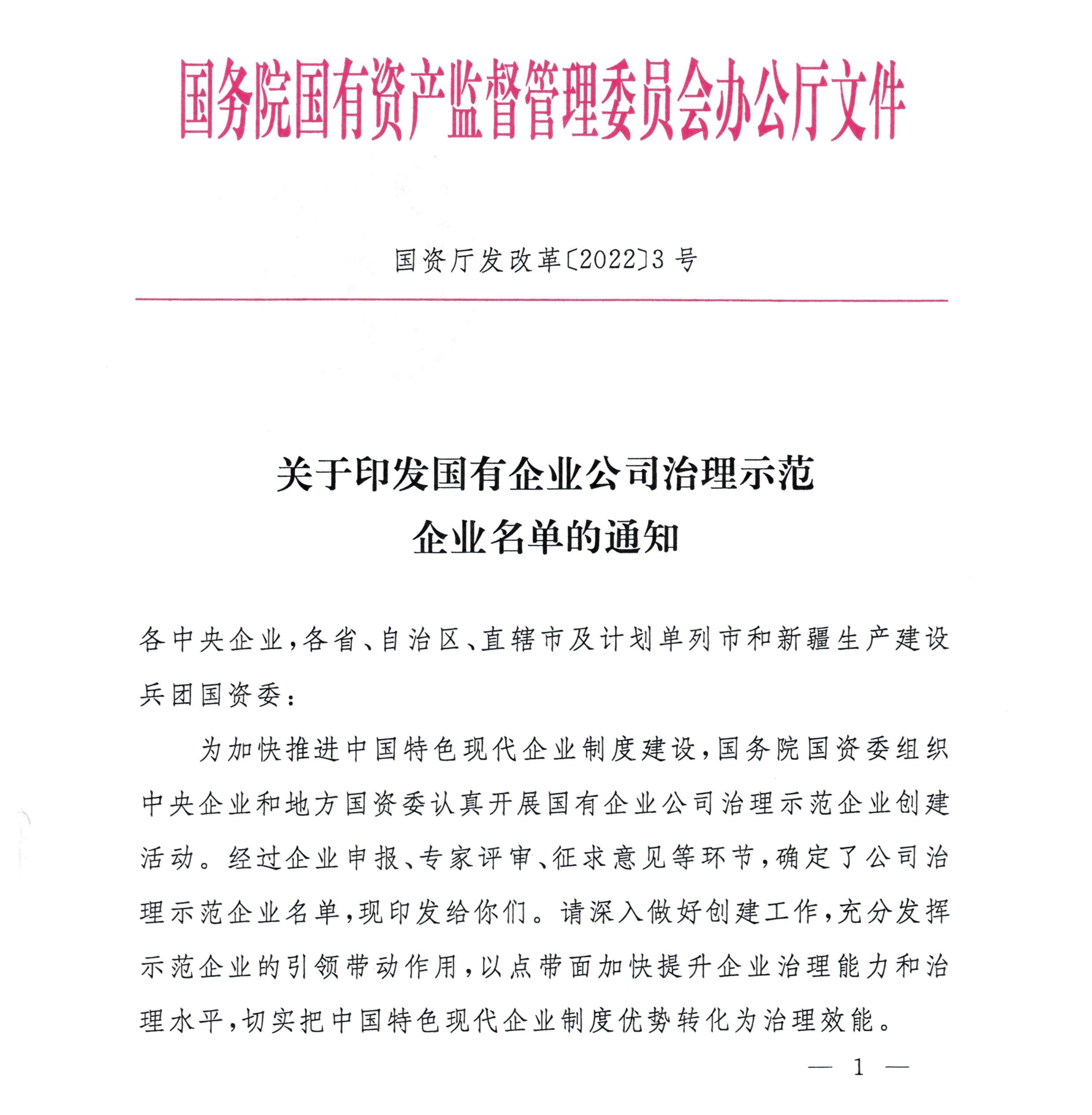 為加快推進中國特色現代企業制度建設,落實“兩個一以貫之”要求,國務院國有資產監督管理委員會(以下簡稱“國務院國資委”)組織中央企業和地方國資委認真開展國有企業公司治理示范企業創建活動。