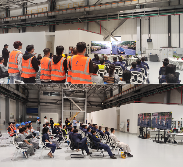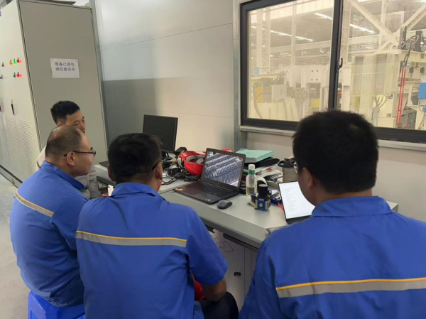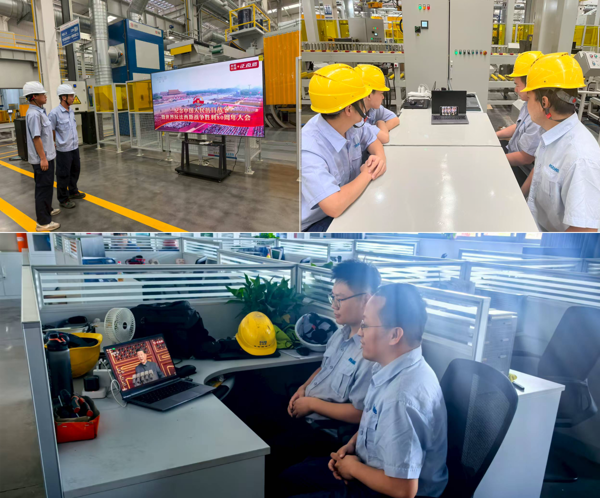 智能裝配事業(yè)部職工在項(xiàng)目現(xiàn)場(chǎng)收看大會(huì)直播