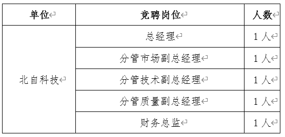 為進一步加強公司干部隊伍建設,激發干部隊伍活力,創新選人用人方式,拓寬選人用人渠道,經黨委研究,決定對北自科技經理層開展公開招聘。現將有關事項通知如下: