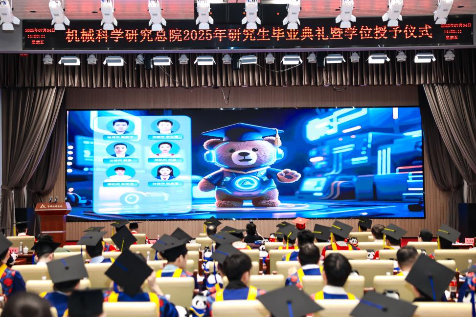 研究生院傾力打造的智慧課程虛擬AI助教“科小研同學”作為典禮第二主持人登上舞臺,現(xiàn)場宣讀了2025年北京市優(yōu)秀畢業(yè)研究生、機械總院優(yōu)秀畢業(yè)研究生、優(yōu)秀學位論文、科技創(chuàng)新成果獎獲得者名單,孟祥宇、李玉鑫、王宇、姜超分別向獲獎同學們頒發(fā)榮譽證書。