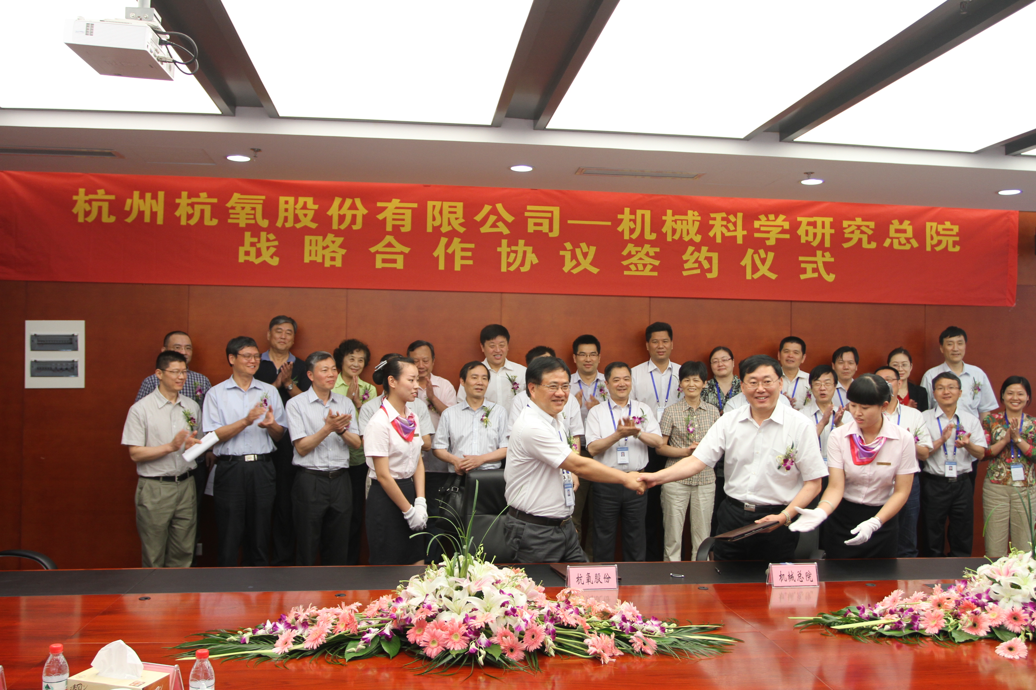 機(jī)械科學(xué)研究院浙江分院有限公司與杭州杭氧股份有限公司自2008年杭氧集團(tuán)開始遷擴(kuò)建項(xiàng)目開始合作,至今已為杭氧集團(tuán)成功開發(fā)非標(biāo)成套裝備及生產(chǎn)線二十多臺(tái)套。雙方簽訂《戰(zhàn)略合作協(xié)議書》,將進(jìn)一步促進(jìn)雙方全面合作,充分發(fā)揮總院裝備制造業(yè)綜合優(yōu)勢(shì)支撐杭氧集團(tuán)長足發(fā)展。